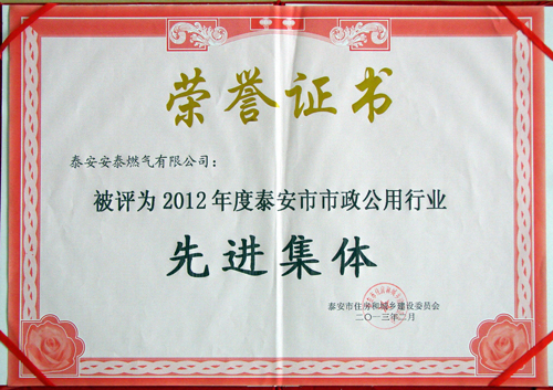 2012年度泰安市市政公用行業先進集體