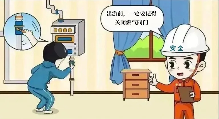 出游前,一定要記得關閉燃氣閥門,防止燃氣意外泄漏引發安全事故: