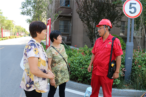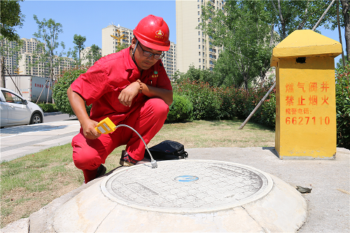 宋緒全是2007年通過競聘上崗從泰山玻纖進入安泰燃氣公司工作的,刨除在兩站的工作時間,他擁有8年的巡線經驗。巡線工作使得他皮膚黝黑,也讓他養成了吃苦耐勞的精神和雷厲風行的作風。正是這樣,他成為管網部的一名“急先鋒”。宋緒全說,每天的工作是對公司管線進行巡檢,對沿線供氣設備設施進行查漏,發現管線保護范圍內有施工跡象的,及時和施工方進行聯系并協調處理,確保管線不被施工破壞。工具包內有檢漏儀、卷尺和拉閥門井蓋的鐵拉鉤。在這炎熱的夏天,人們空手在烈日下行走尚且汗流浹背,何況他還要隨身背著工具包。小區樓下,看到幾位剛買菜回來的老人,宋緒全上前攀談,一再叮囑用氣安全常識。隨后他又檢查小區里的調壓器、入戶管和燃氣閥門井,這是他每天都要重復的工作。