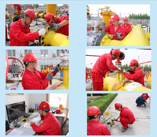 由于燃氣的高危特殊性,站區(qū)安全工作成為企業(yè)運行的首要任務,細節(jié)把控顯得尤為重要。進入工藝區(qū)全程必須防靜電,連普通手機都絕對不能使用。而本次更換閥門及過濾器屬于特殊的作業(yè)環(huán)境,臨近3米范圍內(nèi)就是正在正常供氣運行的中石化管道工藝區(qū)。大型燃氣閥門吊裝、更換安裝作業(yè)必須有嚴格的方案及相應的安全措施,其中還涉及焊接作業(yè),工程難度和安全風險度可想而知。5月初的天氣微涼,只穿著普通單衣工裝的操作人員因為高度緊張的精神狀態(tài)和需要萬般嚴謹?shù)牟僮鞑襟E,被汗水一次次濕透了臉頰和衣背,“安泰紅”的工作服上,太陽一曬就冒出層層汗堿。