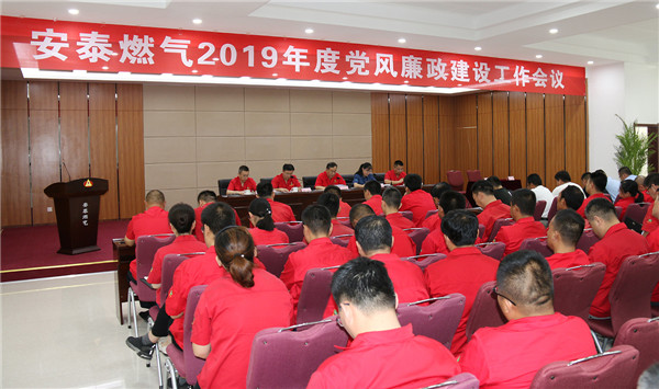 7月24日上午,安泰燃氣召開2019年黨風廉政建設工作會議,深入學習貫徹黨的十九大、十九屆二中、三中全會以及十九屆中央紀委三次全會和集團公司黨風廉政建設和反腐敗工作會議精神,總結(jié)2018年黨風廉政建設和反腐敗工作,圍繞堅持黨的領(lǐng)導、加強黨的建設、全面從嚴治黨和推動全面完成公司年度目標任務,對公司2019年黨風廉政建設和反腐敗工作進行部署。泰山玻纖黨委委員、副總經(jīng)理、安泰燃氣公司董事長趙恒剛就相關(guān)工作做出重要部署,泰山玻纖黨委副書記、紀委書記、工會主席王麗英出席會議并做重要講話,安泰燃氣公司黨委書記、常務副總經(jīng)理佟慶主持會議。安泰燃氣領(lǐng)導班子成員、全體黨員、班組長以上管理人員40余人參加了會議。