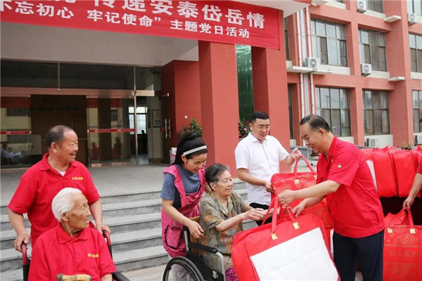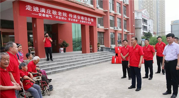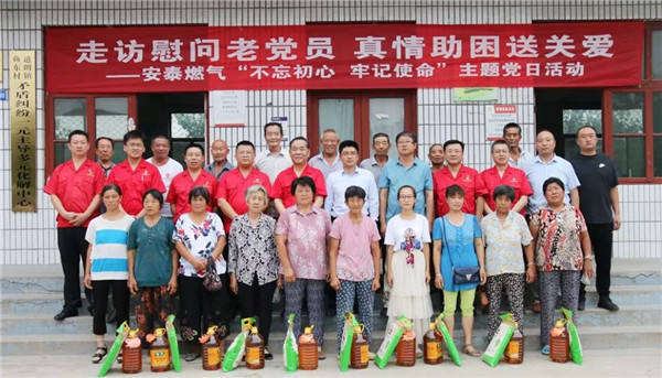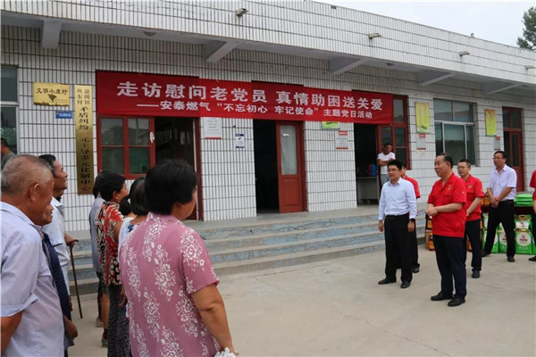 7月25日,泰安安泰燃氣有限公司開展“不忘初心送關愛 組織關懷暖人心”主題黨日活動。泰山玻纖黨委委員、副總經理、安泰燃氣董事長趙恒剛帶領公司班子成員、支部委員、黨員骨干分別走進滿莊鎮敬老院和道朗鎮魚東村,以實際行動向退伍老黨員做出的貢獻表示敬意,把積極助困的國企社會責任和中華民族尊老愛老的傳統美德落到實處。