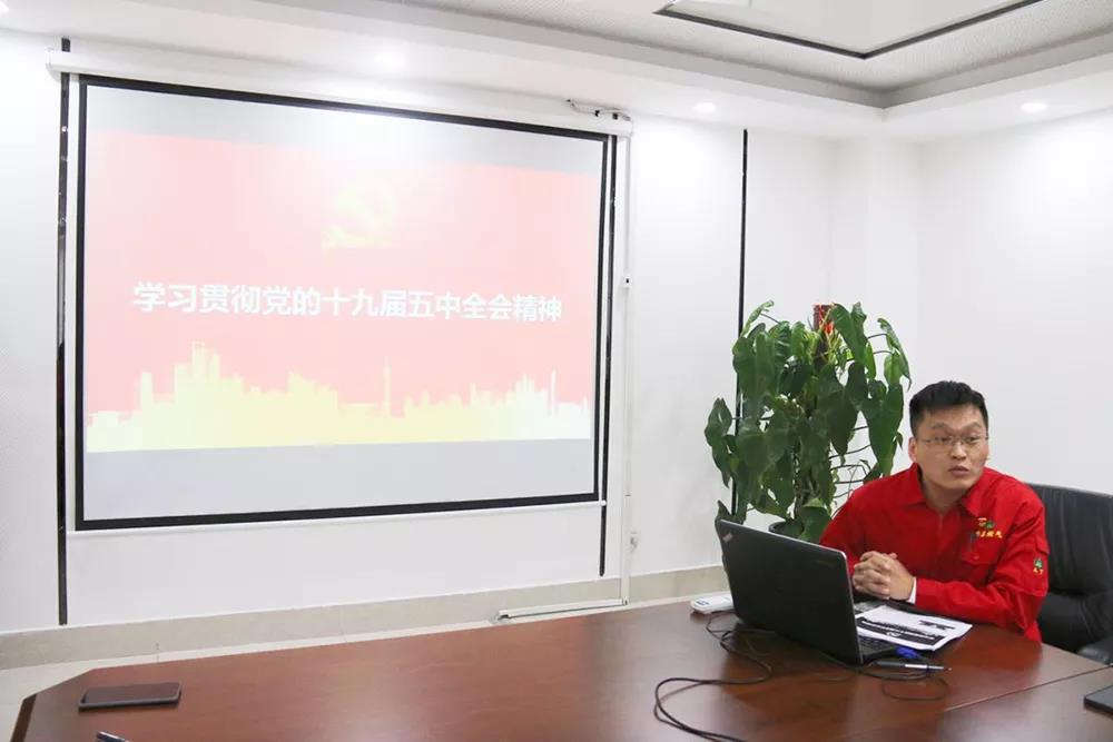 支部宣傳委員宋振華在對黨的十九屆五中全會精神進行全面宣講和深入闡釋時,從學深悟透習近平新時代中國特色社會主義經濟思想視角切入,同時將黨的十九屆五中全會精神學習與持續提升員工職業化水平、迎接新時代新挑戰有機結合進行了宣貫。