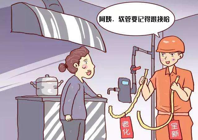居民家中燃氣管道與燃氣灶具相連接部分的軟管(建議使用金屬波紋管)請在規定時間內使用,超期使用可能會造成膠管老化、龜裂、漏氣;膠管長度不宜超過2米且不可穿越墻體;在使用時,膠管不要離灶火太近,以免發生變形漏氣;用戶應在膠管兩端安裝喉箍加以固定(不能用金屬絲代替)等。