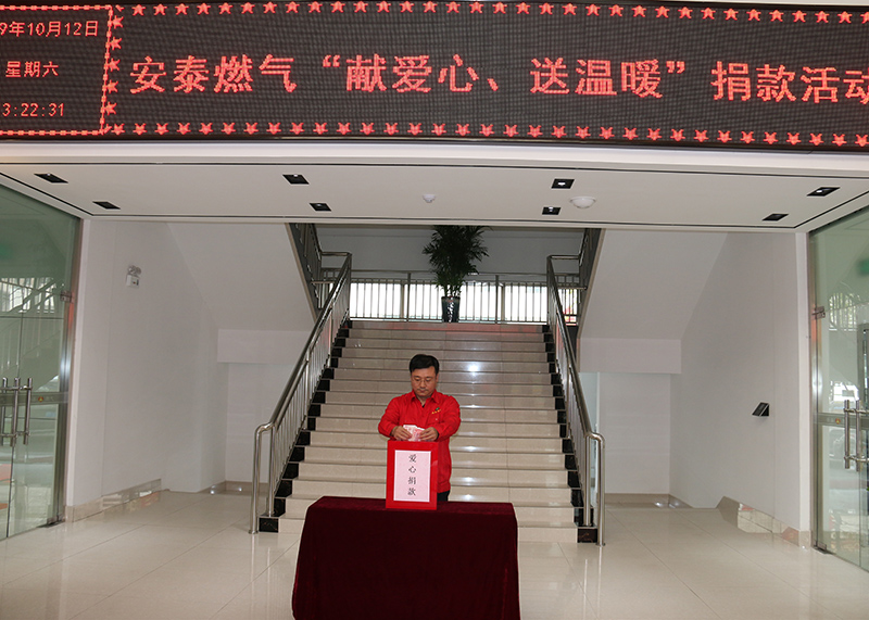 泰山玻纖黨委委員、副總經理、安泰燃氣公司董事長趙恒剛了解情況后立即組織公司舉行“獻愛心 送溫暖”捐款活動,并率先垂范,帶領全體黨員、干部帶頭捐款,全體員工積極響應,紛紛參加到本次活動中來。點點愛心,匯聚成河,無私助人,溫暖真情。