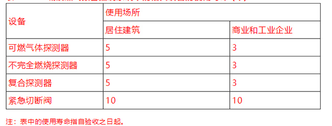 表3.1. 3 城鎮燃氣報警控制系統中的相關設備的使用壽命 (年)