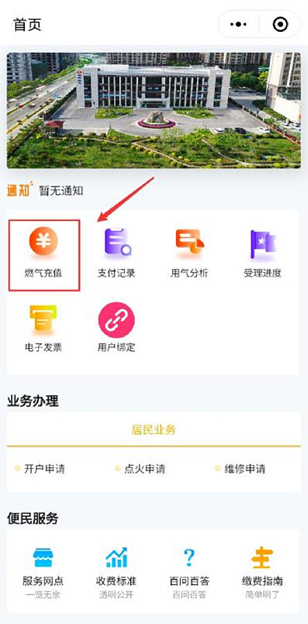 ? 非IC卡用戶點擊首頁的“燃氣充值”,會直接跳轉至繳費詳情頁面,可直接點擊頁面預設定的充值金額進行整數金額繳費,或在“其他金額”處填寫指定金額進行繳費。